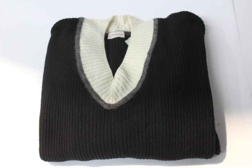 A New Moncler V-neck black/cream/grey jumper (Size XXL) (1487579).