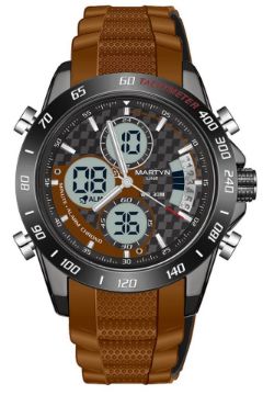 An as new Martyn Line 3025 Brown Multi-Function Rubber Watch (Stock Image).