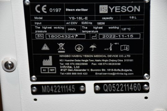 An 18ltr Pressure Steam Sterilizer YS-18L-E (Viewing recommended).