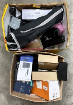 A quantity of assorted new and pre-owned electrical items (Two boxes. All items sold as seen).