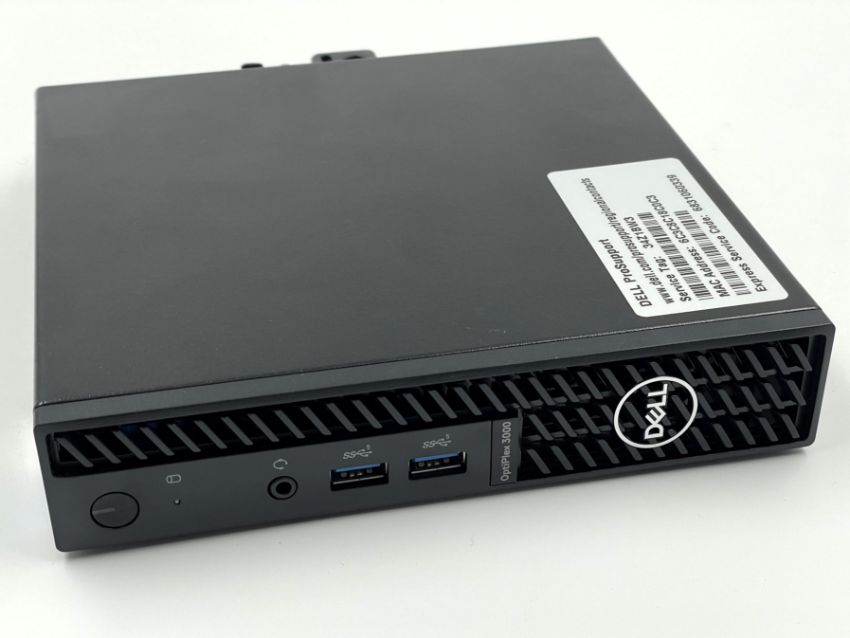 A pre-owned Dell Optiplex 3000 MFF PC with Intel Core i3-12300T 2.3GHz CPU, 8GB RAM, 256GB SSD running Windows 10 Pro (S/N: 34Z1BW3) (As new charger and mouse included. Boxed).