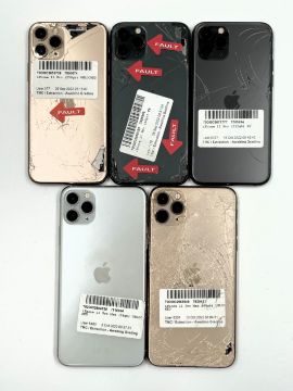 Two pre-owned Apple iPhone 11 Pro Max and three Apple iPhone 11 Pro (All handsets iCloud account clear, various damages/faults. All items sold as seen, for parts only).