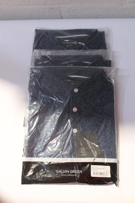 Three Galvin Green Mami Golf Polo Tops Navy Sizes 1 x M, 1 x XL, 1x XXL.