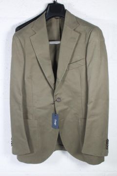 An as new Drakes Lovat Cotton Drill Tailored Jacket, Made in Italy, Size 38 (Measurements; Chest 51cm, Shoulder to Shoulder 47cm, Overarm Sleeve Length 63.5cm, Centre Back Length 75cm).