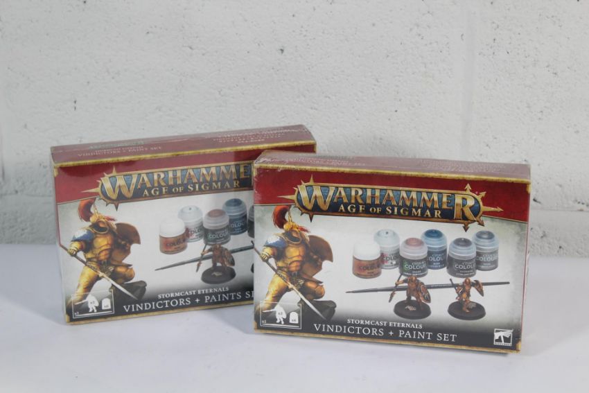 Two Warhammer Age of Sigmar Stormcast Eternals Vindictors + Paint Sets, 5011921191956. As New.