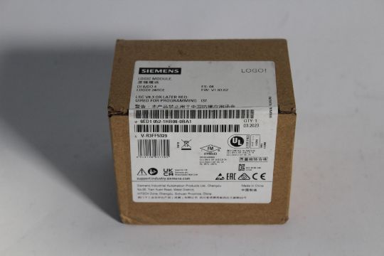 Siemens LOGO! Series PLC CPU for Use with LOGO! 8.3, 24 V DC Supply, Relay Output, 8-Input, Digital Input (1P6ED1052-1HB08-0BA1). As New.