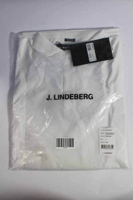 An as new J.Lindeberg Heath Regular Fit Golf Polo in White, Size L.