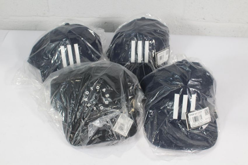 Four as new Adidas Hats to include 3x Adidas Tour 3 STP in Navy Blue and 1x Adidas Revolve Hat in Black.