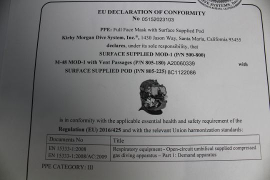 An as new Kirby Morgan Surface Supplied MOD-1 The Surface Supplied MOD-1 lightweight and durable commercial diving mask (Stock image).