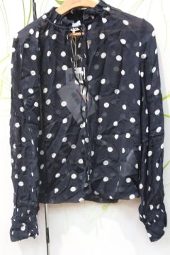 Ganni Polka Dot Georgette Blouse in Sky Captain, Size32.