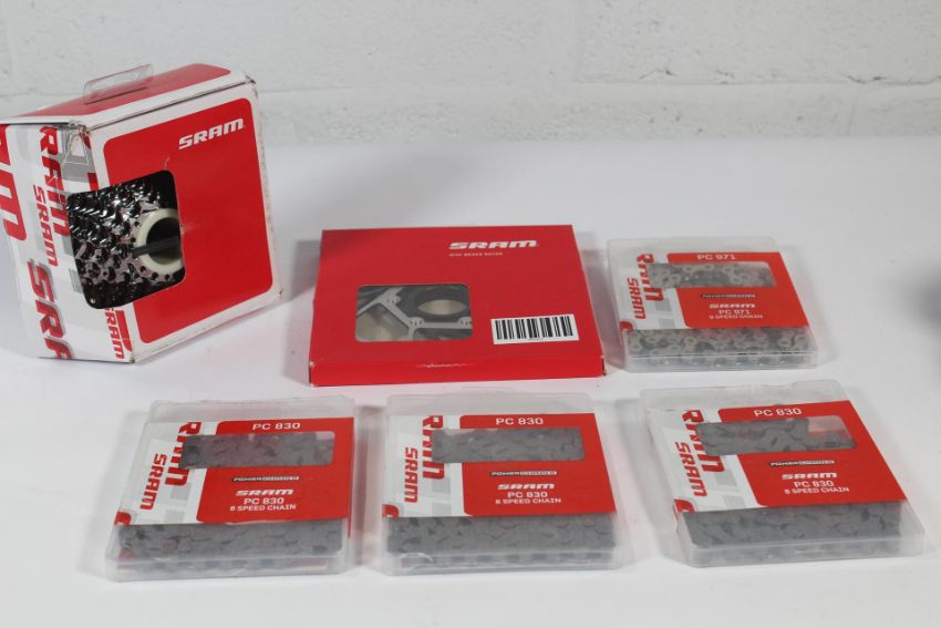 Sram 8-Speed Cassette, Sram Disc Brake Rotor and four Sram 8-Speed Chains PC 830.
