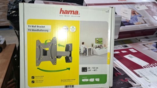A pallet of returns to include Hamma television wall brackets and related items (Viewing advised).