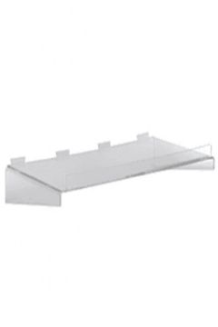 A pallet of as new Deflecto Acrylic Marketing Equipment to include slat-wall shelves with lip (FB00021) and seminar holders (68801).