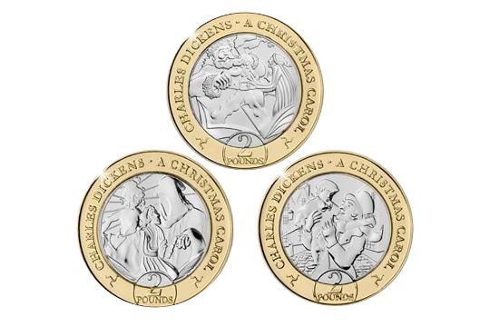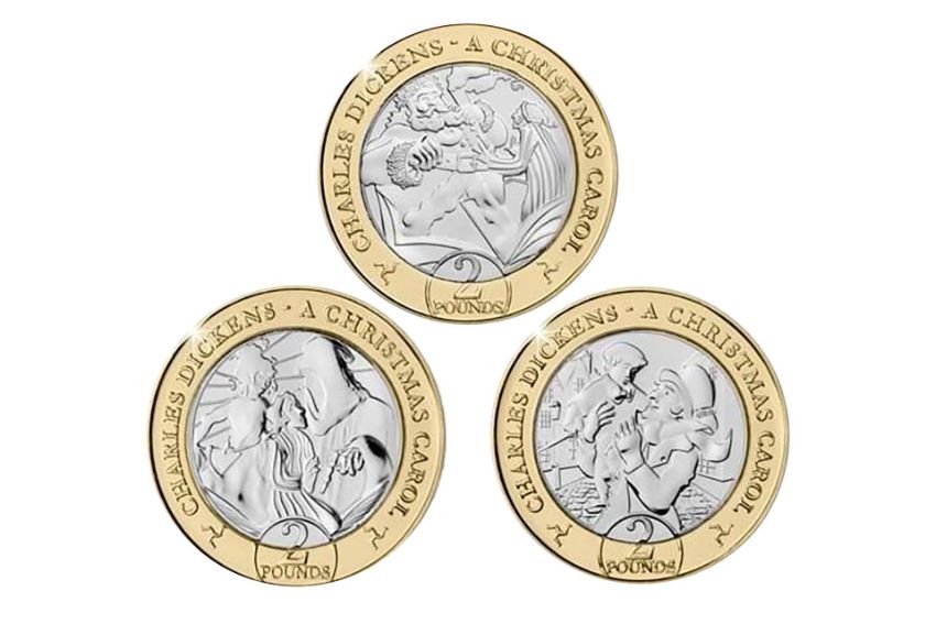 The complete 3-coin Isle of Man 2020 'A Christmas Carol' £2 set, all mint as issued or near so. Coins include: Scrooge & Ghost of Christmas Present; Scrooge & Ghost of Christmas Past & Yet to Come and Scrooge & Tiny Tim