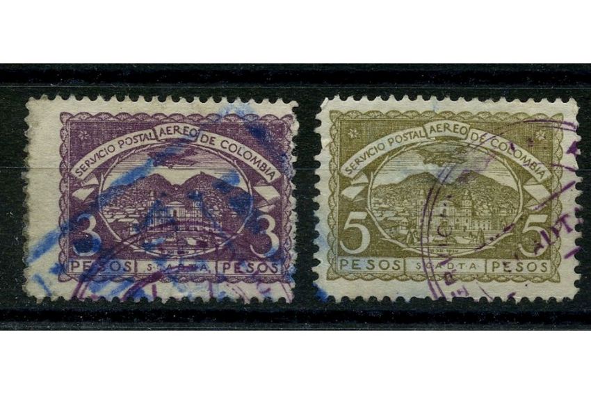 Colombia (SCADTA) 1921-23 3p, 5p Top vals, cds used, faulty, but presentable. SG27-28