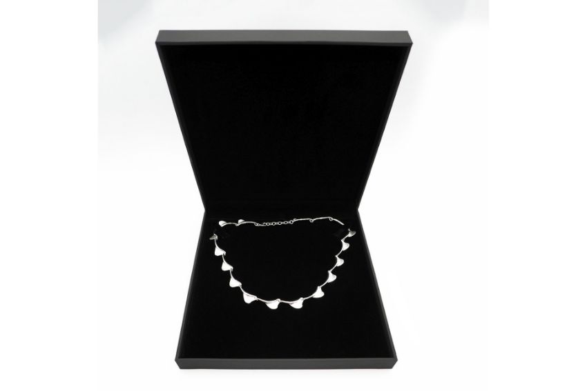 Stunning sterling silver twisted petal shaped links in a combination of  brushed satin and highly polished. Each link measures 1cm x 2.5cm, the necklace  is 42-45cm long and weighs 31.8g.  Comes in a gift box.