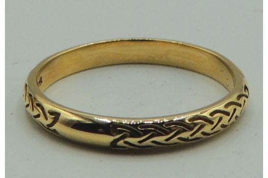 An elegant 18ct gold 3mm wide band made fron rare Welsh gold. Size N, weight 2.38g