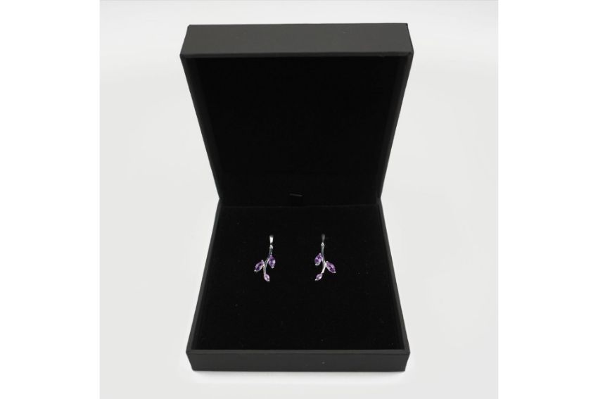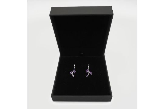 Sterling silver drop earrings set with amethysts. Drop 3cm