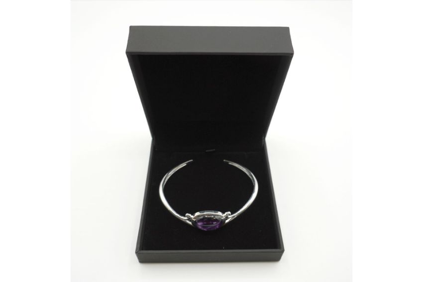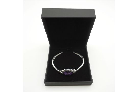 Sterling silver bangle set with a cabochon amethyst (1.5 x 2cm)