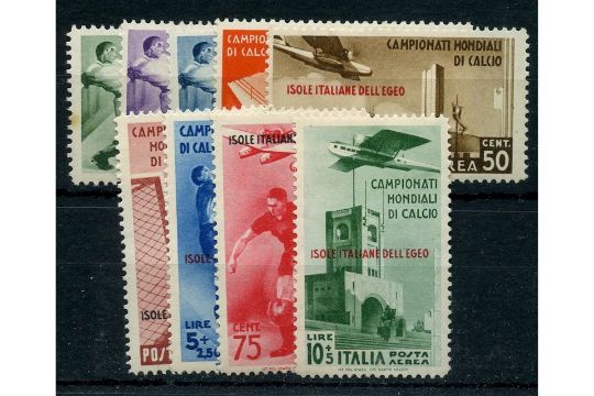 Dodecanese Is. 1934 Football Championships (postage & air) mtd mint, some minor faults. SG128-36