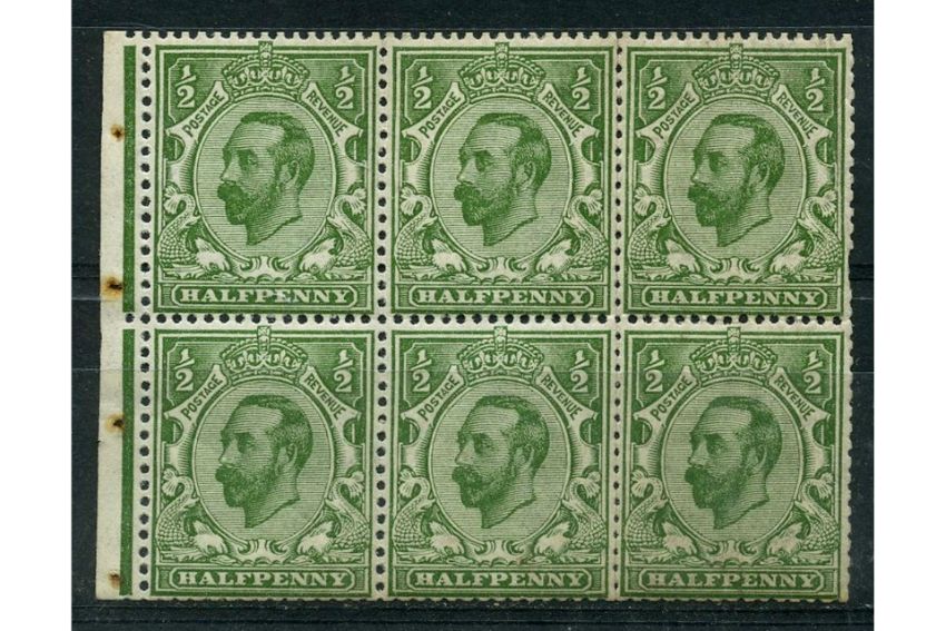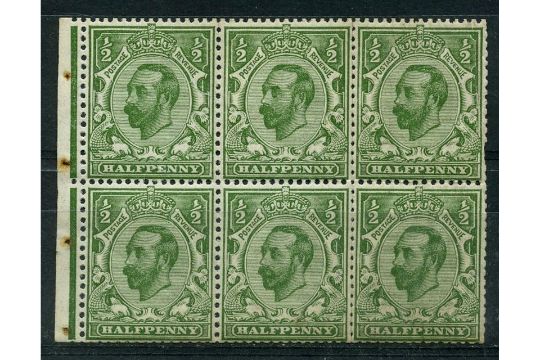 GB 1911-12 1/2d Bright-green, die B, wmk inverted pane of 6, u/m. Some minor faults. SG325wi