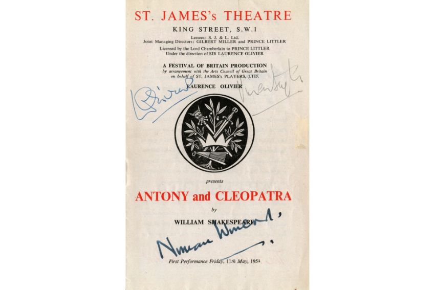 Signed St. James's Theatre programme for 'Antony and Cleopatra' dated May 1951 which has been signed by the celebrated husband and wife.