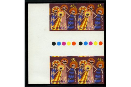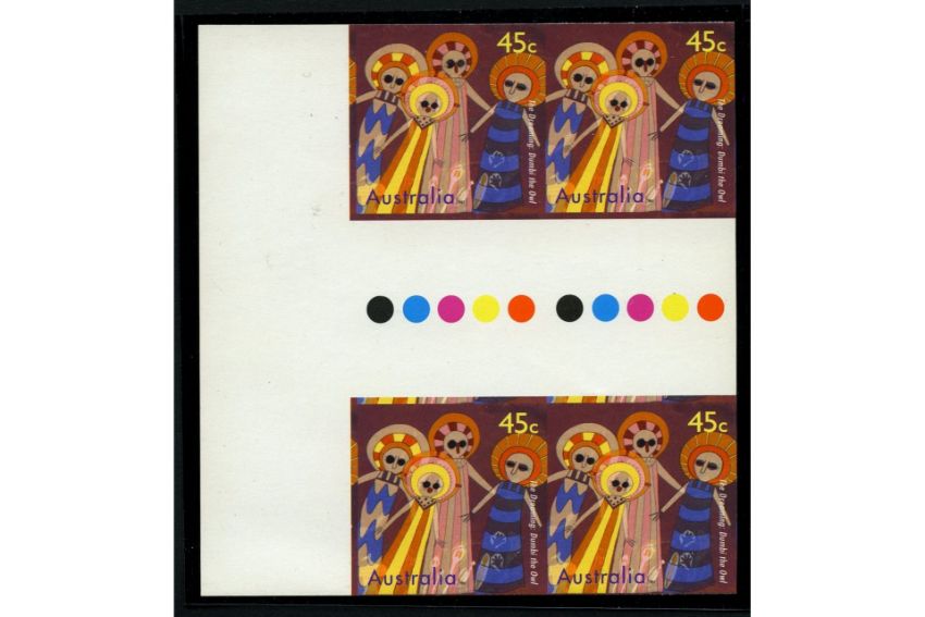 Australia 1997 The Dreaming 45c Dumbi the Owl IMPERFORATE TRAFFIC LIGHT BLOCK OF 4. SG1704a