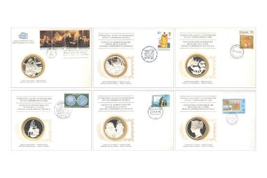A collection of 36 official medallic first day covers. Each cover encapsulates a limited edition sterling silver proof medallion. The covers, issued monthly, start from 5th January 1976 with the Australian 75th Anniversary of Nationhood commemorative and finishes with the Seychelles Bicentennial of Victoria issued December 15th 1978. Countries include Great Britain, New Zealand, Japan, Monaco, Canada, Botswana and the USA. Comes in its original album.