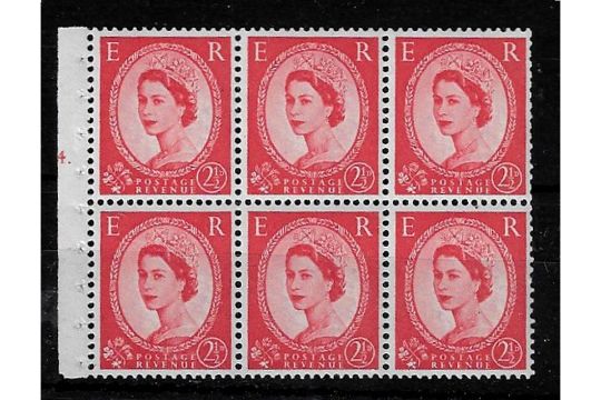 GB 1958 2-1/2d Carmine-red, cylinder 4 dot pane of 6, u/m. SB83, SG574