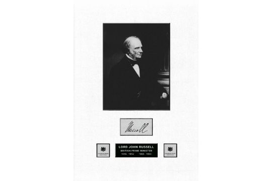 Black and White image of Lord John Russell (PM 1846-1852) mounted with his signature. Size:240 x 330mm