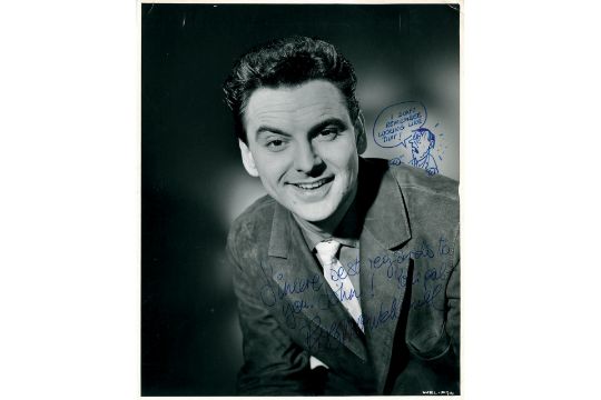 Signed black and white photograph of the late entertainer and comedian Bob Monkhouse