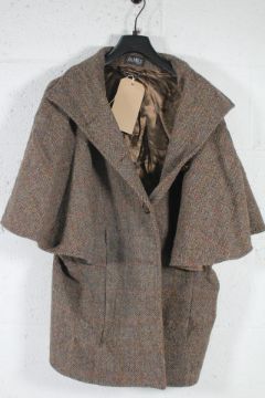 A pre-owned Peter James Harris tweed short over-cape/poncho (S, fully lined, belt missing).
