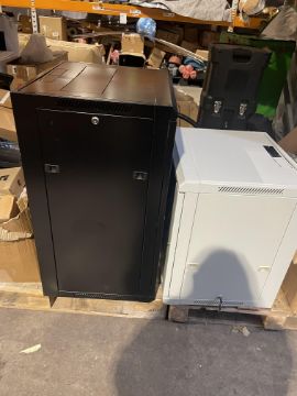 A large quantity of new and pre-owned electrical/networking parts, fixtures, trunking, two server cabinets and other items.
