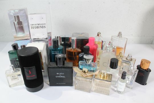 Approximately Thirty Assorted, Mainly Part-Used, Fragrances to include No.5 L'Eau Chanel J. Pour Homme Eau De Parfum, Gucci Guilty Black and Davidoff Cool Water (All part used) and Emporio Armani Diamonds Eau De Parfum (50ml) and Singular Oice (100ml x 4) (All as new).