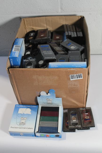Approximately four hundred and fifty as new Wolf Brand Cigar Cutters in a variety of different colours, comes in fifty six ring gauge and fifty two ring gauge.