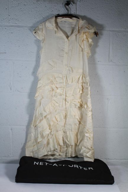 Prada Cream Silk Ruffled Shirt Dress, Size 38. Pre-Owned