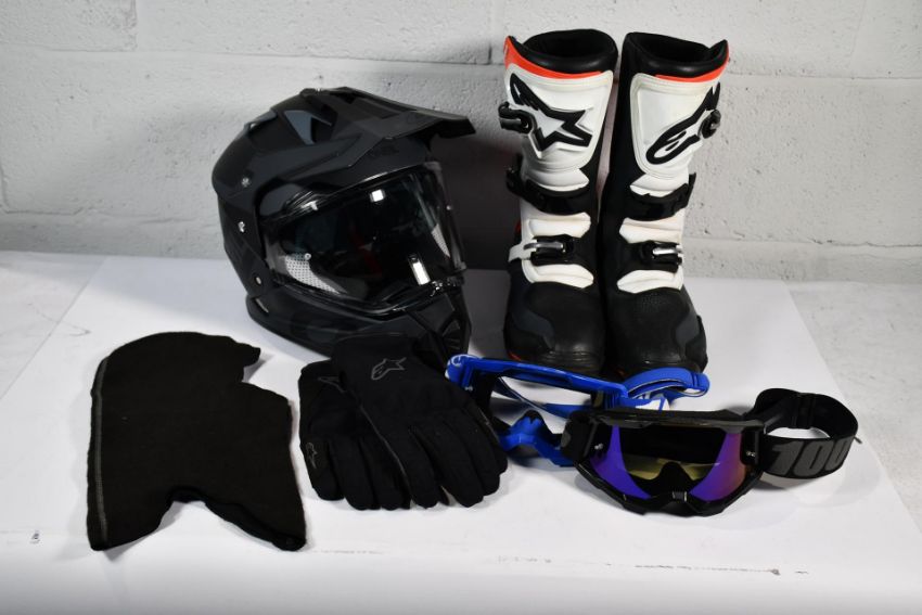 O'Neal Sierra Adventure Motorcycle Helmet, Size Large (60cm), Two Pairs of "100%" Motocross Goggles, Alpinestars Armoured Motorcycle Gloves, Motorcycle Balaclava, Pinlock Fog Resistant Lens, Pair of Aplinestars Motorcycle Trials Boots, Size UK 10. All Pre-owned (Excellent Condition).