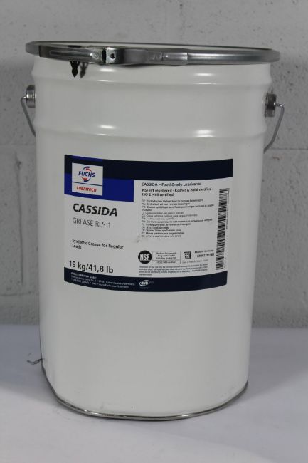 An as new Tub of Cassida Grease RLS 1 Food Grade Synthetic Semi-Fluid Regular Load Grease (19kg).
