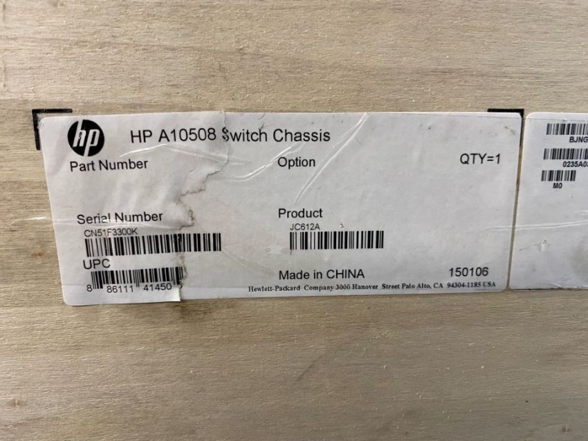 An HP A10508 Switch Chassis (PN: JC612A) (As new, box opened. Palletised. Sold as seen).