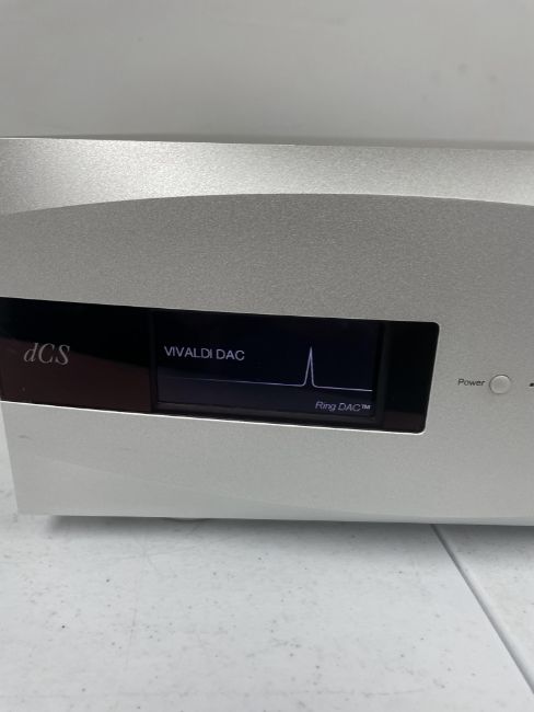 A pre-owned dCS Vivaldi Digital-to-Analog Converter in Silver with original packaging, UK power and BNC cables included (No remote, manual or other items included) (Powers on, not tested further. Possible signs of tampering to screws by mains socket. Sold as seen, viewing advised).