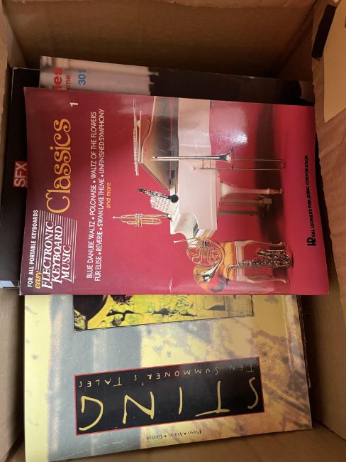 Quantity of Musical/Instrument Stands, TVs, Cables and Books to include QuikLok Stands, TUV LGS Millenium, Toshiba CRT TV, Power Supplies and Others.