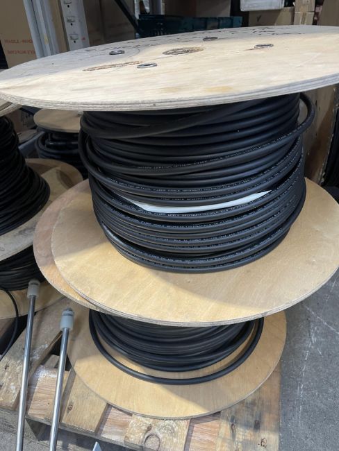 Assorted reels of cable to include various fibre optic cables; 9-04-CST, OM3 16-Core armoured, 3.04.LT.CST.ECA, 215-070, 52934A1NGPQ CAT5e and a Cable Co Multi Reeler.