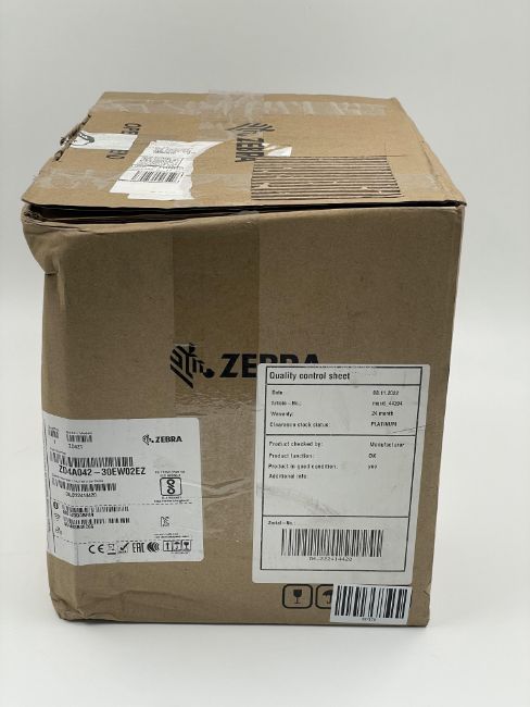 A boxed as new Zebra ZD421 Thermal Transfer Printer (P/N: ZD421 ZD4A042-30EW02EZ) (Box open, some damage to box).