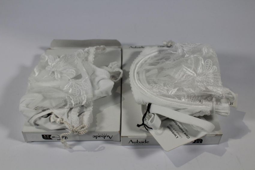 An Aubade Lovessence floral underwired blanc (White) bra (Size UK 34 C) and a pair of matching Briefs (Size UK S).