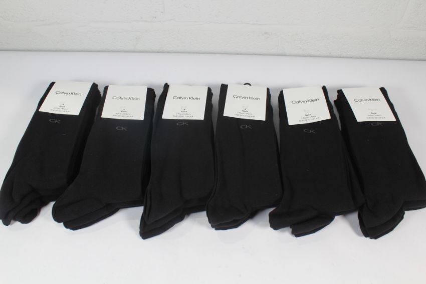 Six x 3-packs of Calvin Klein Black Socks, Men's, Size 6 x 6-8.