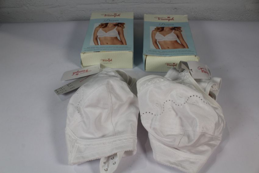 Two Triumph Doreen Cotton Non Wired White Bras Sizes 2 x 38 DD.