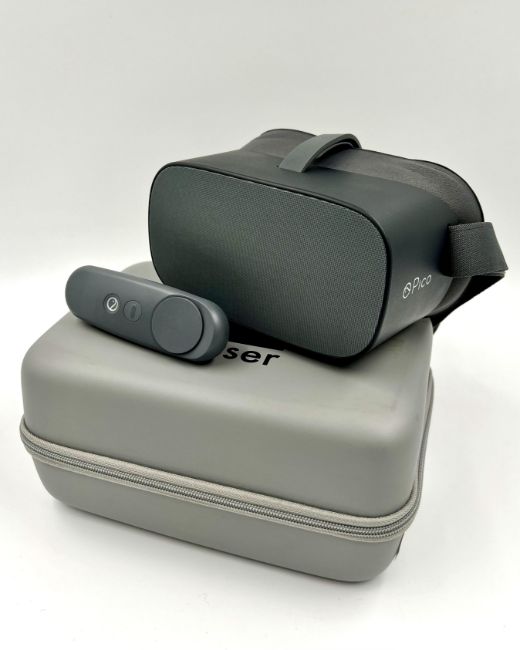 A pre-owned Pico G2 4K S All-in-One VR Headset with controller and USB-C cable in storage case.