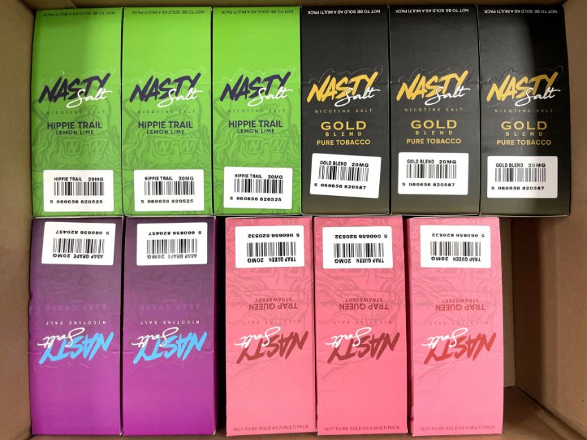 Eleven boxes of ten Nasty Salt 10ml 20mg Nic Salt E-Liquid (Assorted flavors and 2024 best before dates) (Over 18's only).