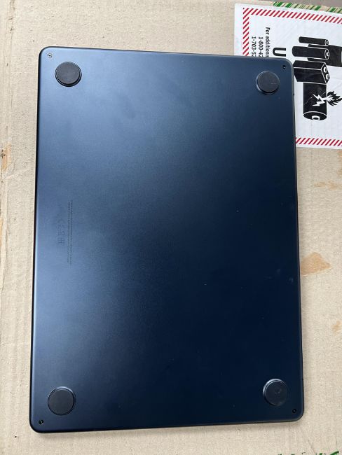 A pre-owned Apple MacBook Air (A2681/2022) 13" in Midnight with M2 Chip, 8GB RAM, 256GB SSD (Display fault - vertical band. iCloud account clear. No charger or other items included) (Sold for parts only).
