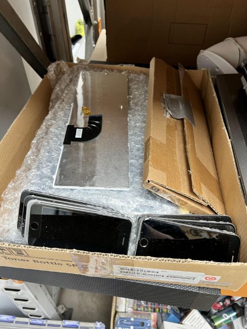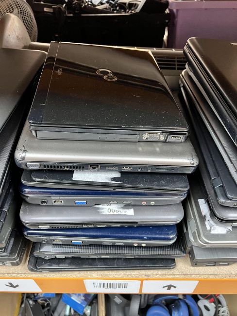 A large quantity of pre-owned IT & electrical items to include: 34 x pre-owned laptops, 8 x Apple iPhone 6, an LG LAB550W SoundPlate, laptop batteries, chargers and other items (All items sold as seen, viewing advised).